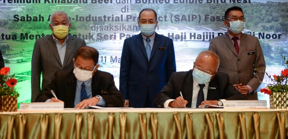 After the meeting Hajiji witnessed the Memorandum of Understanding (MoU) signing ceremony between Sedia and Sawit Kinabalu for the setting up of the beef and bird nest production plants in SAIP.